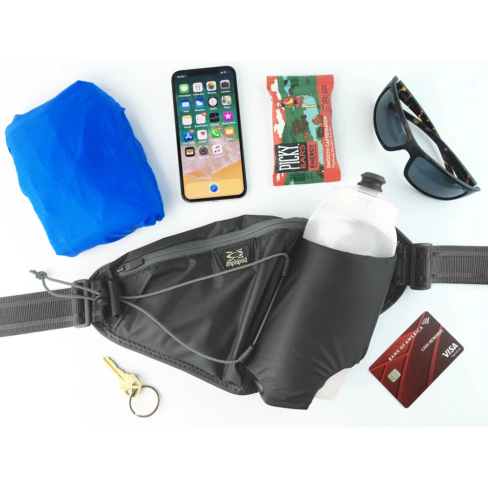 Amphipod® Profile-Lite™ 20 Bottle Pack :: Boasting ultimate performance, Amphipod Profile-Lite 20 Bottle Pack is a compact and lightweight hydration belt perfect for runners, hikers, and fitness enthusiasts. Featuring 20 ounces of hydration, it also has multiple pockets for storing essentials like keys, phone, and nutrition. It was made with breathable, moisture-wicking fabric to keep you comfortable and dry during your workouts, and integrated reflective detailing add safety during low light conditions. It’s a convenient and practical accessory for your active lifestyle.