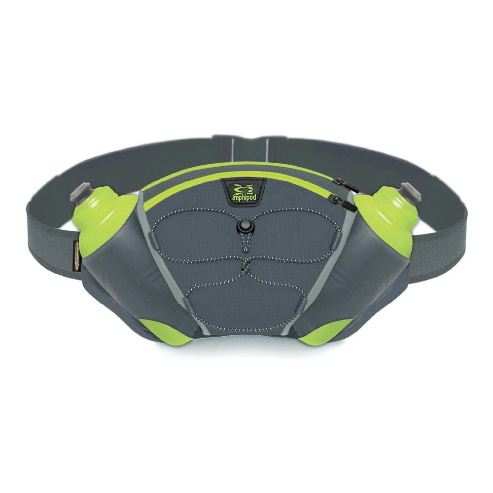 Amphipod® Profile-Lite™ Trail Runner 32 ounce :: Hit the trails running, always keeping your hydration close and convenient with the Amphipod Profile-Lite Trail Runner 32 ounce hydration belt. Get ample carrying capacity for going the distance with the two 16 ounce bottles, and make sure your sips are quick and easy with the NEW Jett Lock Caps™ and single handed bottle access. You’re sure to feel ultra comfy in this lightweight belt that’s contoured to fit you like a glove, and it features strategically placed cushioning plus bounce-free performance, too. Plus, you’ll even get added stay-seen safety running after dark in the Profile-Lite Trail Runner 32 ounce, compliments of the reflective detailing.