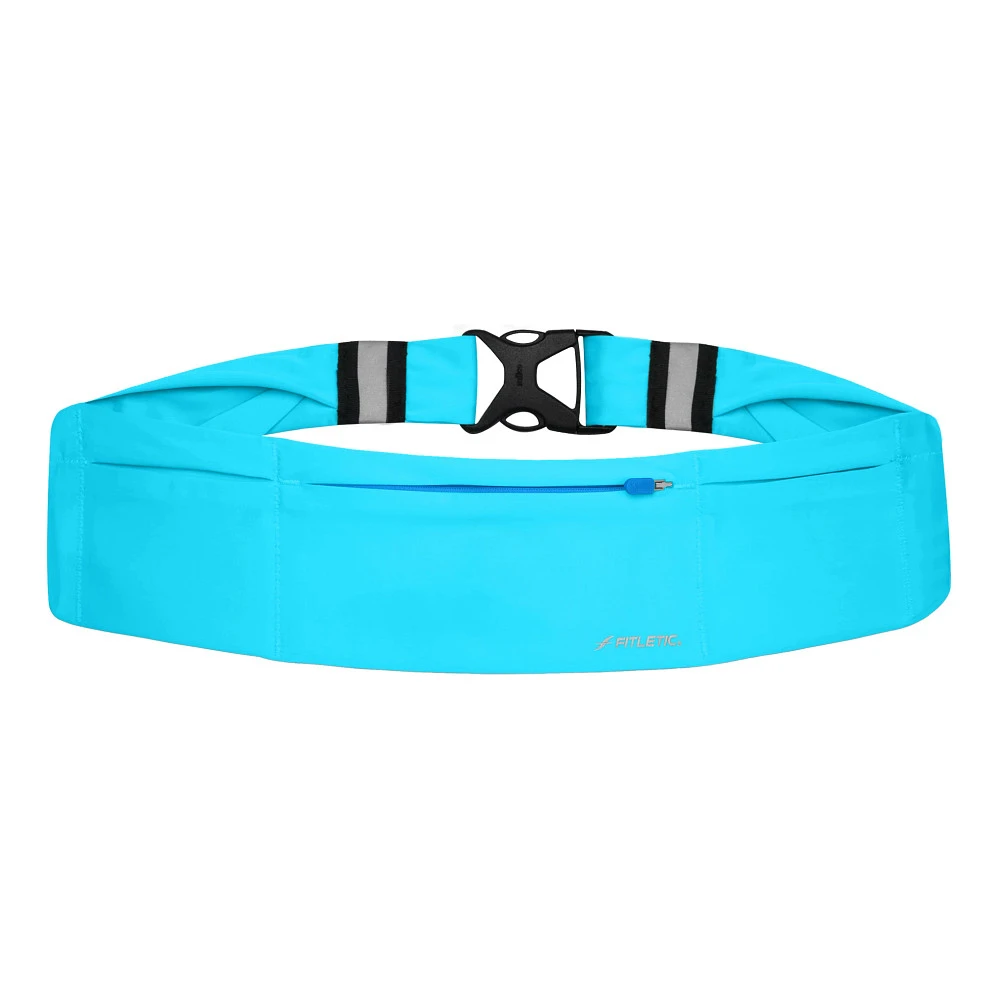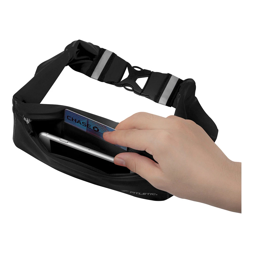 Fitletic® 360 :: This lightweight belt has a total of three roomy pockets to will fit all your essentials such as your keys, phone, credit cards, passport, medical supplies and more. Two quick-access pockets on either side separate your gear while keeping them handy. The main pocket secures your valuables with a zipper. A convenient key clip keeps your keys secure and out of the way. The interior pocket provides secure stowage for your ID and cash. The 360 degree belt is the all-around perfect solution for biking, hiking, and any outdoor activity!
