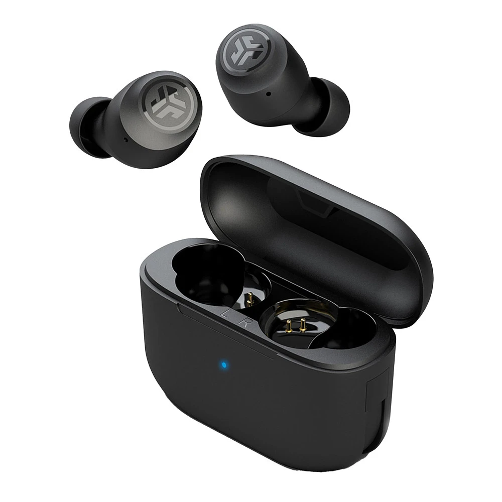JLAB® AUDIO GO AIR POP TRUE WIRELESS HEADPHONES :: Crank up the beats with JLab Audio Go Air Pop True Wireless Headphones. Custom EQ³ sound and Bluetooth 5 with an upgraded antenna bring you the clearest audio experience yet. Sweatproof, splashproof, soft gel tips are a 15% smaller fit than the GO Air and 40% lighter, with a fit so snug you’ll forget they’re in. With 32+ hours of playtime and the slimmest charging case, you can tune the world out and get in your zone anywhere, anytime.