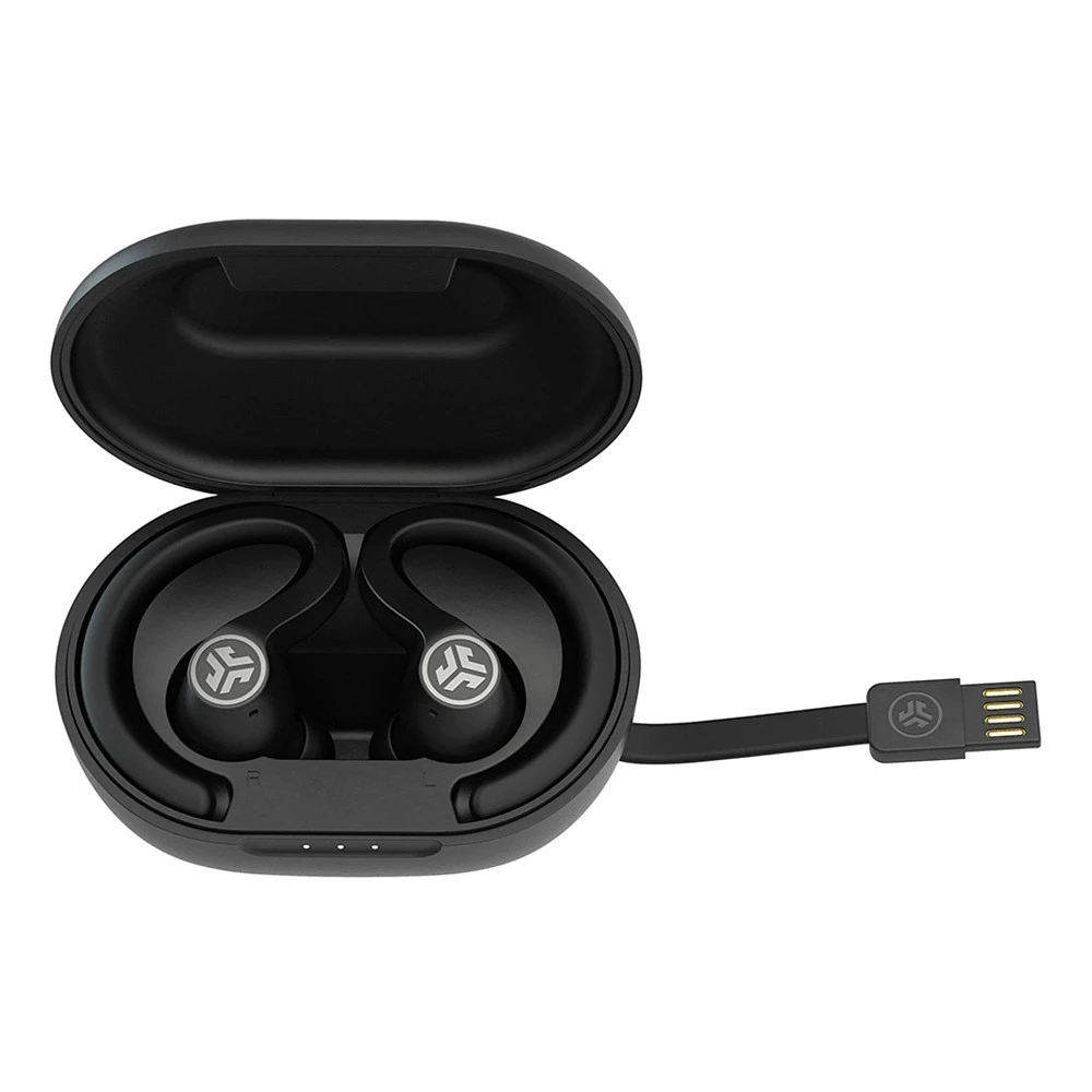 JLAB® AUDIO JBUDS AIR SPORT EARBUDS :: You’ve never had a workout sound like this. The JLab Audio JBuds Air Sport Earbuds features Be Aware Audio so you can decide when you want to let outside noise in. Use 45+ hours of playtime and touch sensor controls to turn on “Movie Mode” during treadmill sprints or tune into conference calls with the highest quality Dual-Connect and Stereo Calling. Splashproof earbuds with an IP66 rating and secure earhook let you move and sweat with confidence.