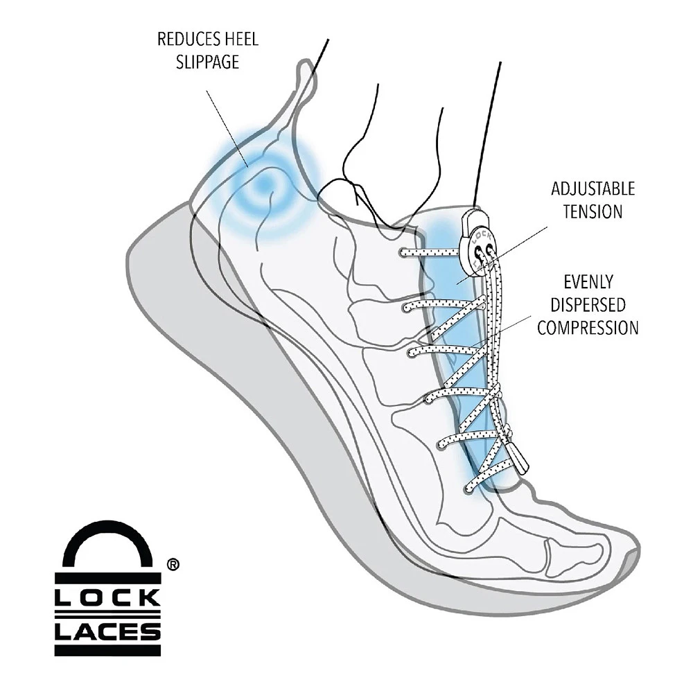 - Each pair of high performance, quality and utility Lock Laces® contains two 48″ elastic laces, two lock devic