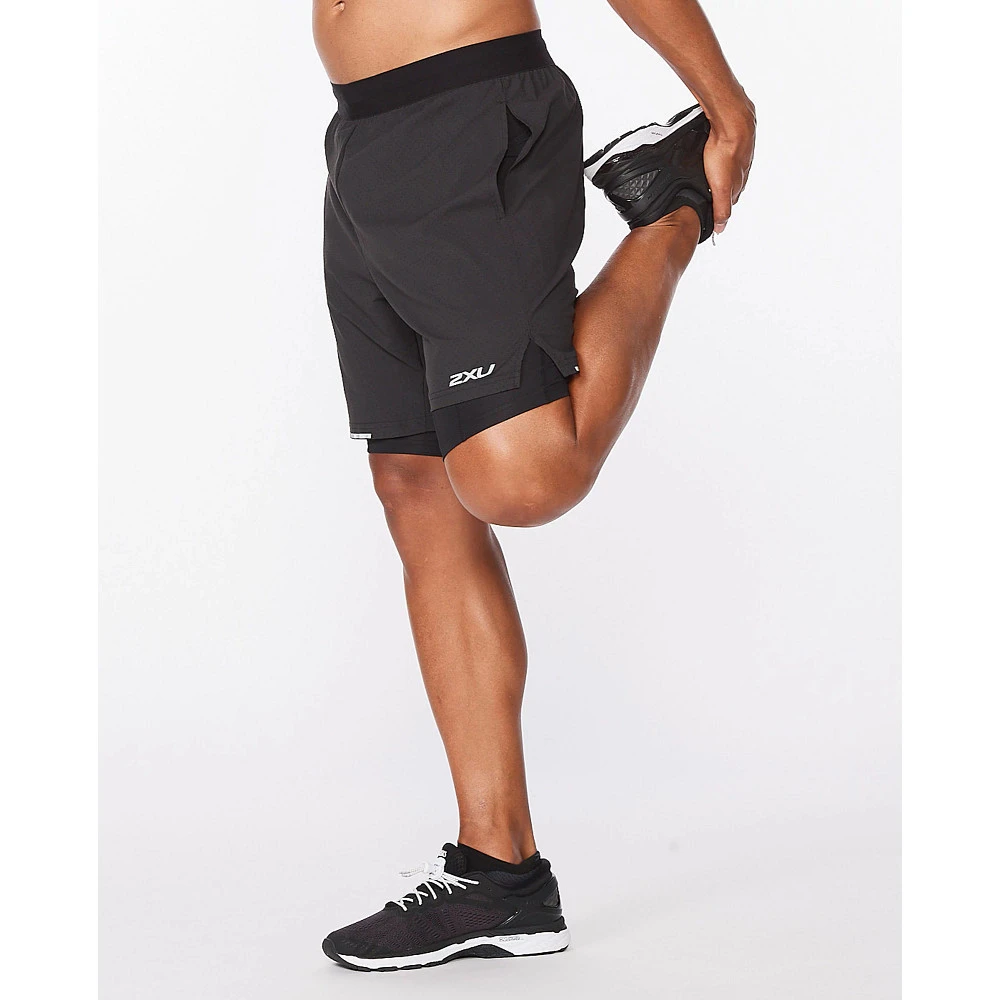 Men’s 2XU® Aero 2-In-1 7″ Shorts :: The Aero 2-in-1 7″ Shorts cover all bases, with internal compression for powerful muscle support and a woven mesh outer layer for coverage.
