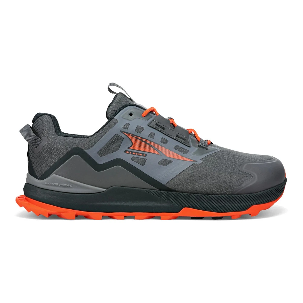 Men’s Altra® Lone Peak All-Weather Low 2 :: Don’t let a few looming clouds keep you off the trails. With the Lone Peak ALL-WTHR Low 2, you can set out for a hike no matter the forecast. Water-resistant, lightweight bootie construction protects you from the elements, with the same legendary comfort you know and love from the Lone Peak Family. Roomy Original FootShapeâ„¢ Fit, responsive Altra® EGOâ„¢ midsole foam, and a grippy MaxTracâ„¢ outsole make tough terrain feel like a walk in the park. Bag that adventure, even if there are a few raindrops!