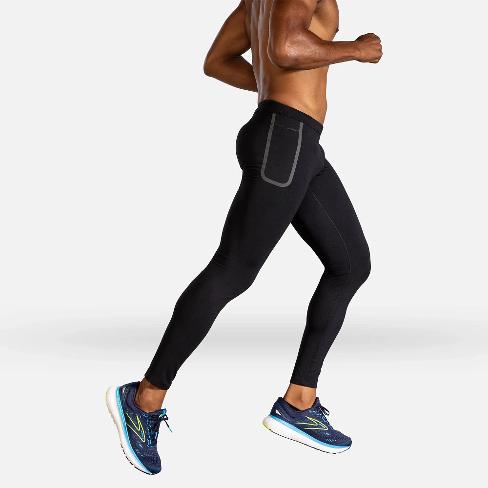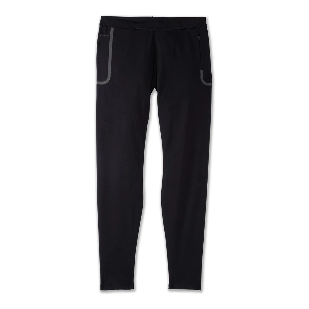 Men’s BROOKS® MOMENTUM THERMAL TIGHT :: Stay toasty in Men’s Brooks Momentum Thermal Tight that are now warmer than ever. A flat waistband keeps these tights from creeping up while breathable DriLayer® fabric wicks away sweat and keeps warm air close to your body. No-bounce pockets let you tote all your essentials in sustainably made pants that’ll keep you motivated on every run.