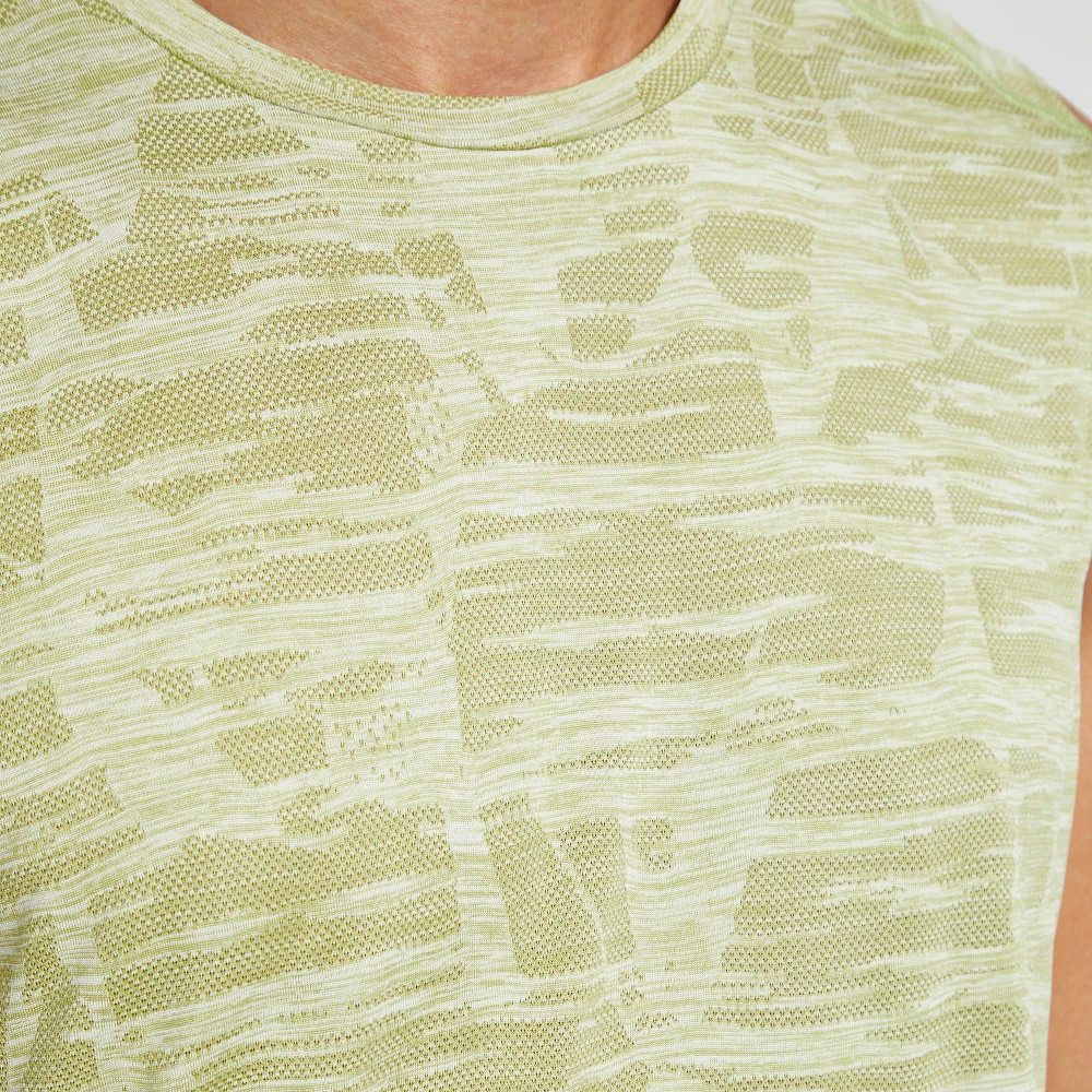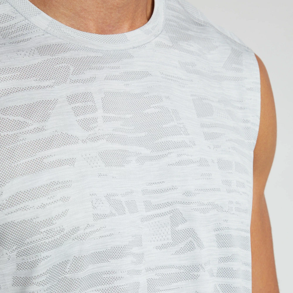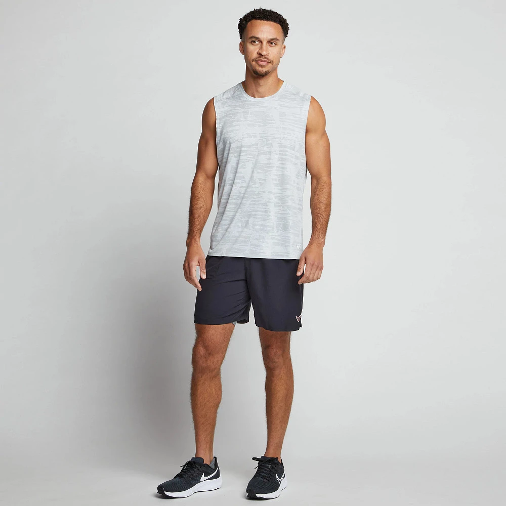 Men’s Korsa Accelerate Sleeveless Muscle Tee :: Stay cool no matter how hard you go in what is sure to become your daily staple. This sleeveless tee is constructed with featherweight jacquard fabric, breathable side vents, and bonded vent edges and body hem for the ultimate performance that simply feels great.