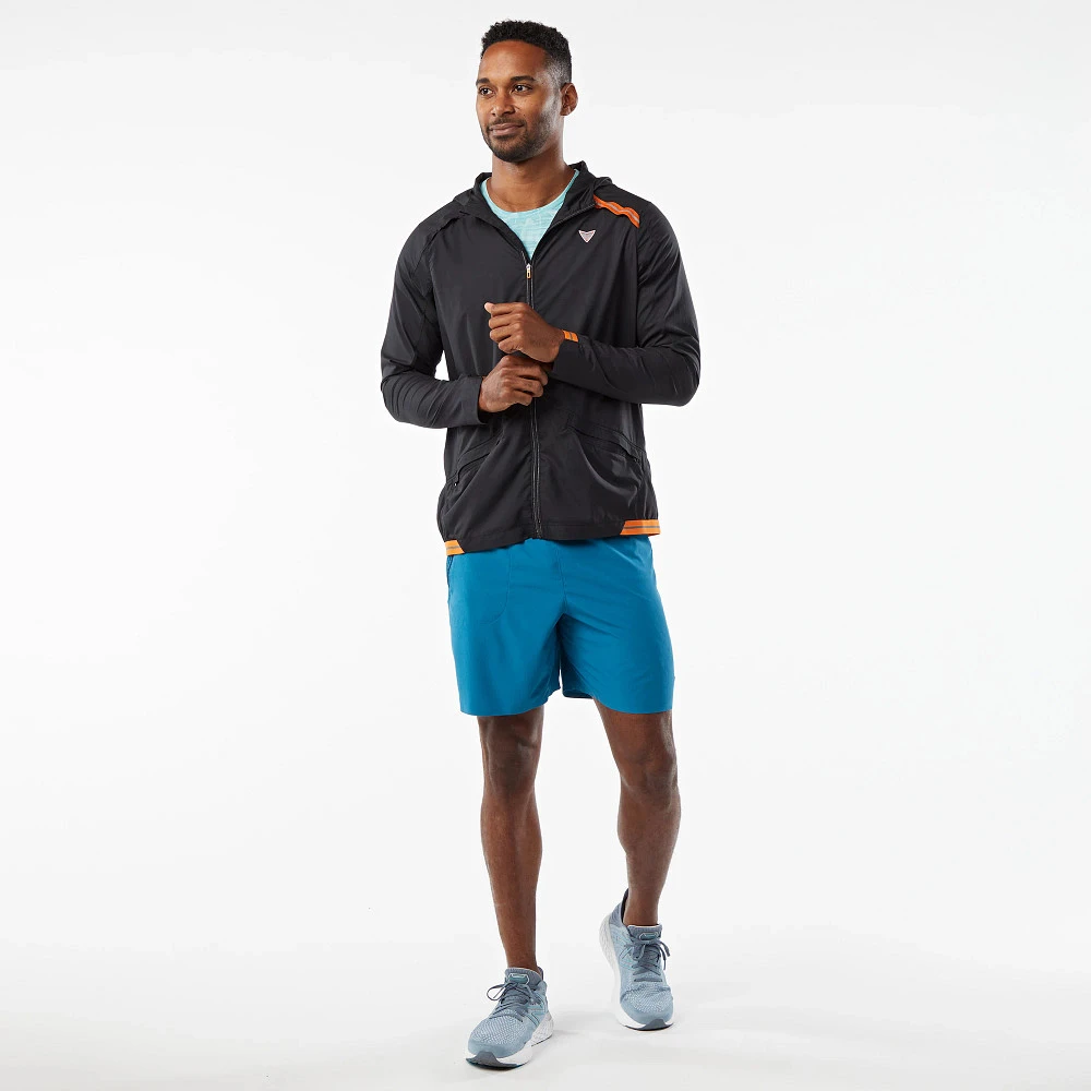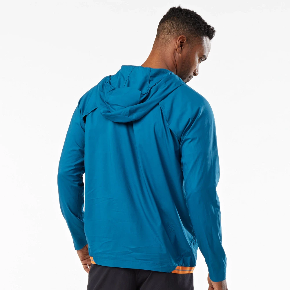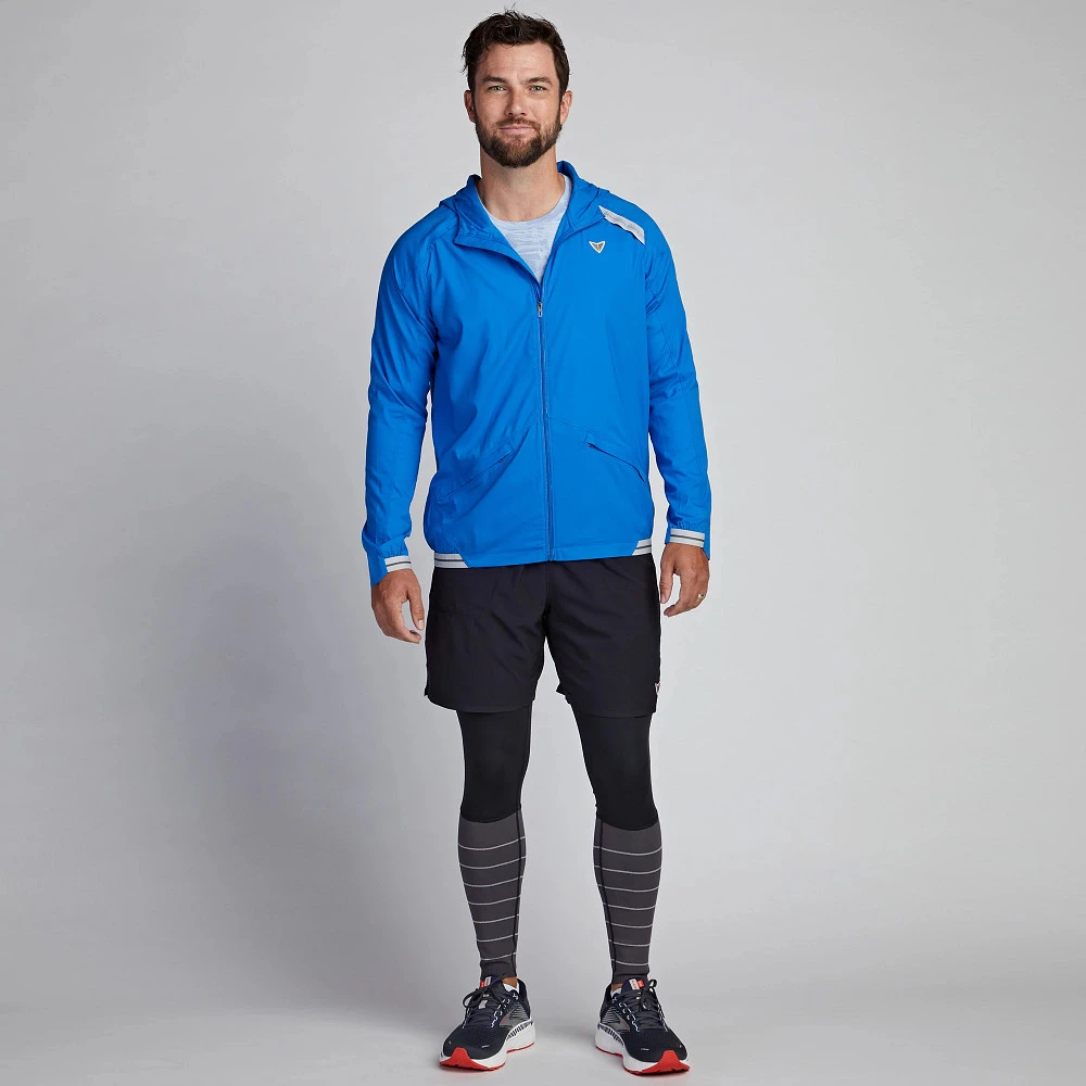 Men’s Korsa Accelerate Run Jacket :: Find your freedom when nothing can slow you down with nearly weightless wind and weather protection that packs into its pocket and fits in the palm of your hand. Front and back ventilation deliver precision airflow and a hood with bonded brim keeps the elements out. Your secret weapon that shields you on those chilly windy run days without overheating.