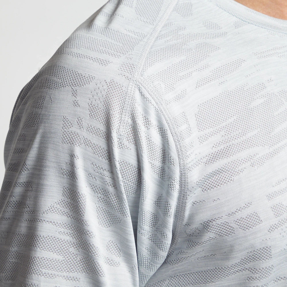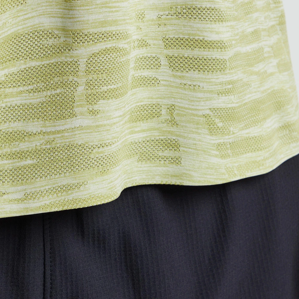 Men’s Korsa Accelerate Short Sleeve Tee :: Don’t sweat it even on the warmest days in this nearly weightless and ultra breathable engineered jacquard short sleeve run tee. Flatlock seams and strategic venting ensure a comfortably cool run or training session.