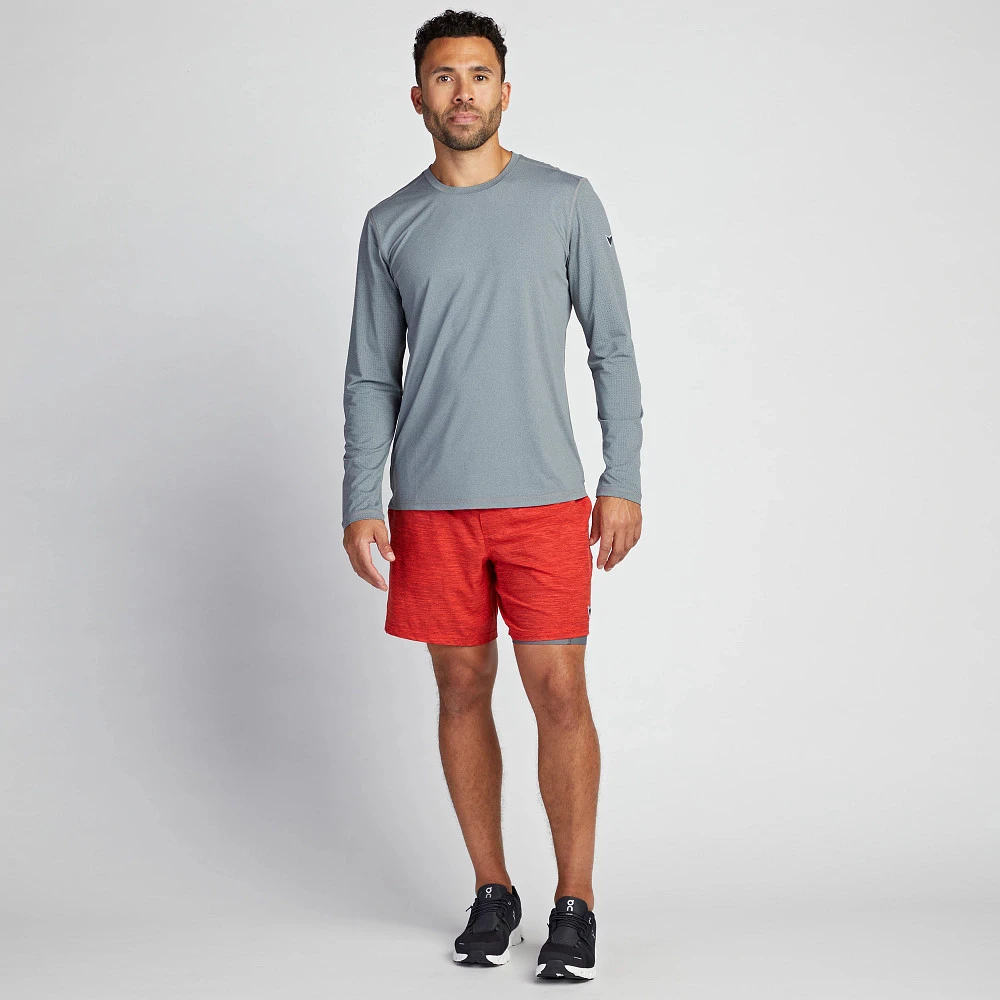 Men’s Korsa Scope 7″ 2-in-1 Short :: Take on your toughest running challenges in shorts that can keep up. These were designed for improved athletic performance and faster recovery, plus you’ll skip the chafe. A stretchy almost weightless outer layer gives you plenty of thigh coverage and an odor-fighting compression liner provides support and won’t pinch or bunch. With six pockets, you won’t have to leave anything behind.