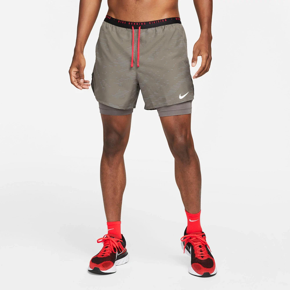 Men’s NIKE® RUN DIVISION FLEX STRIDE 2-IN-1 5″ SHORT :: Hit your stride night or day in your Men’s Nike Run Division Flex Stride 2-in-1 5″ Short. Combining supportive Dri-FIT technology with reflective elements on a stretchy woven fabric, enjoy a visibly smooth, lightweight feel. Its 2-in-1 design has an inner layer and outer shell, plus a molded gusset for unrestricted motion. An adjustable waistband allows custom fit, while the back zippered pocket provides secure storage for essential items.