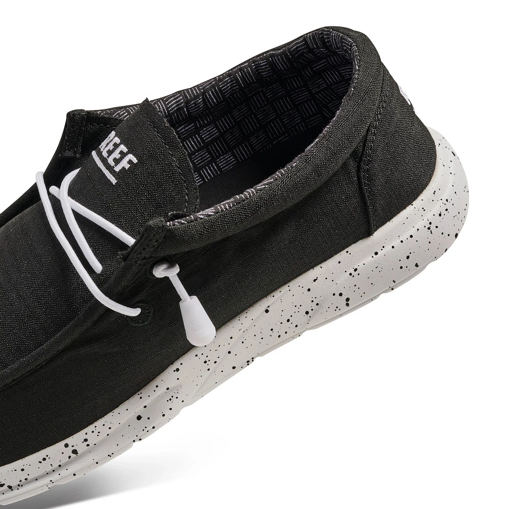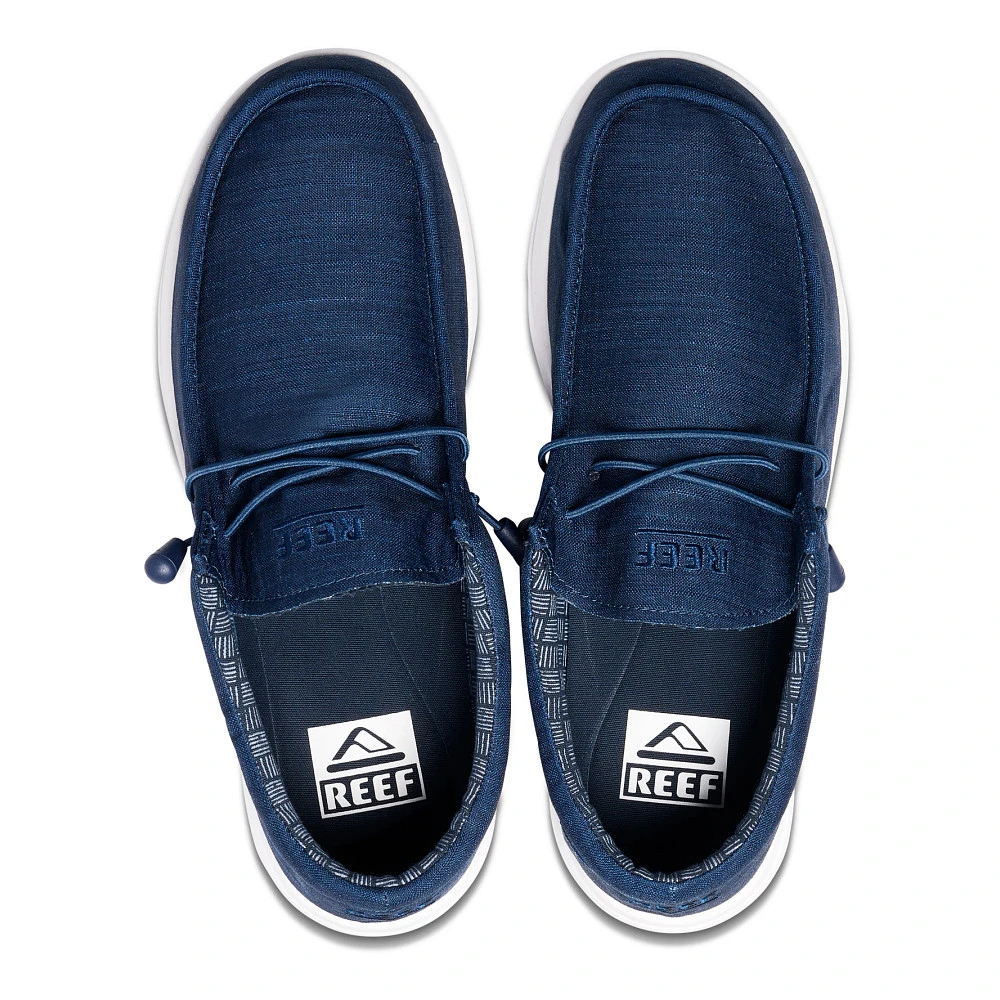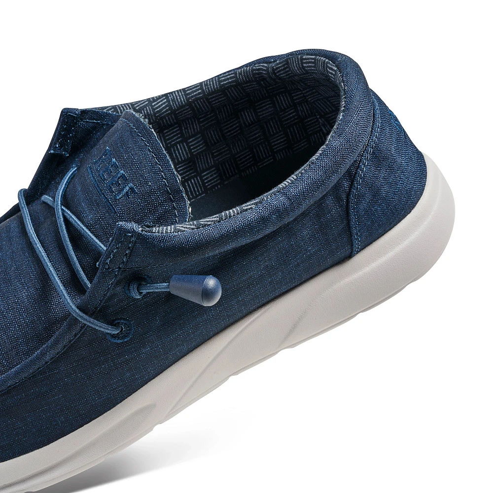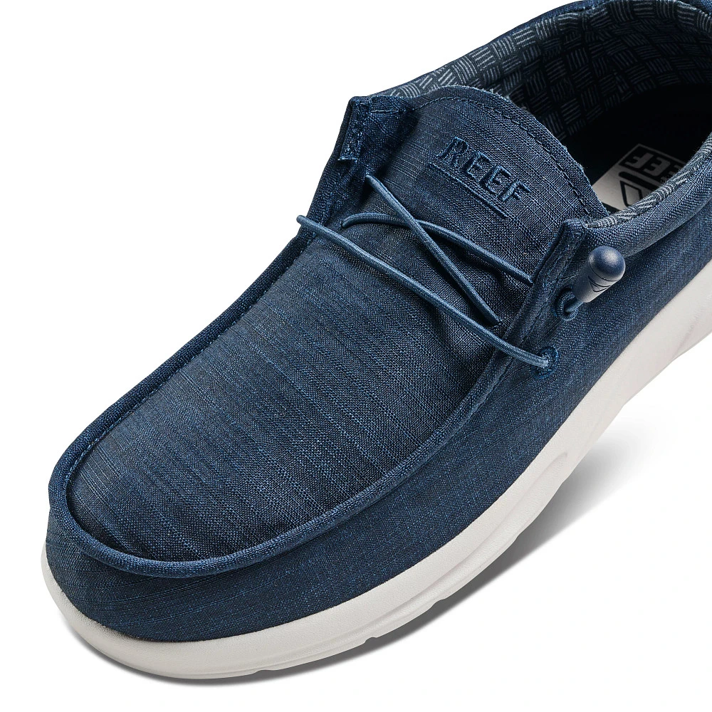 Men’s Reef® Cushion Coast TX :: The Cushion Coast is like a sandal disguised as a shoe; that’s how light and flexible it is. With an EVA outsole keeping your feet feeling good all day, this shoe features a fresh linen textile upper that lends a classic look. Stretch laces don’t need tying; just pull on these Coasts and forget your wearing shoes.