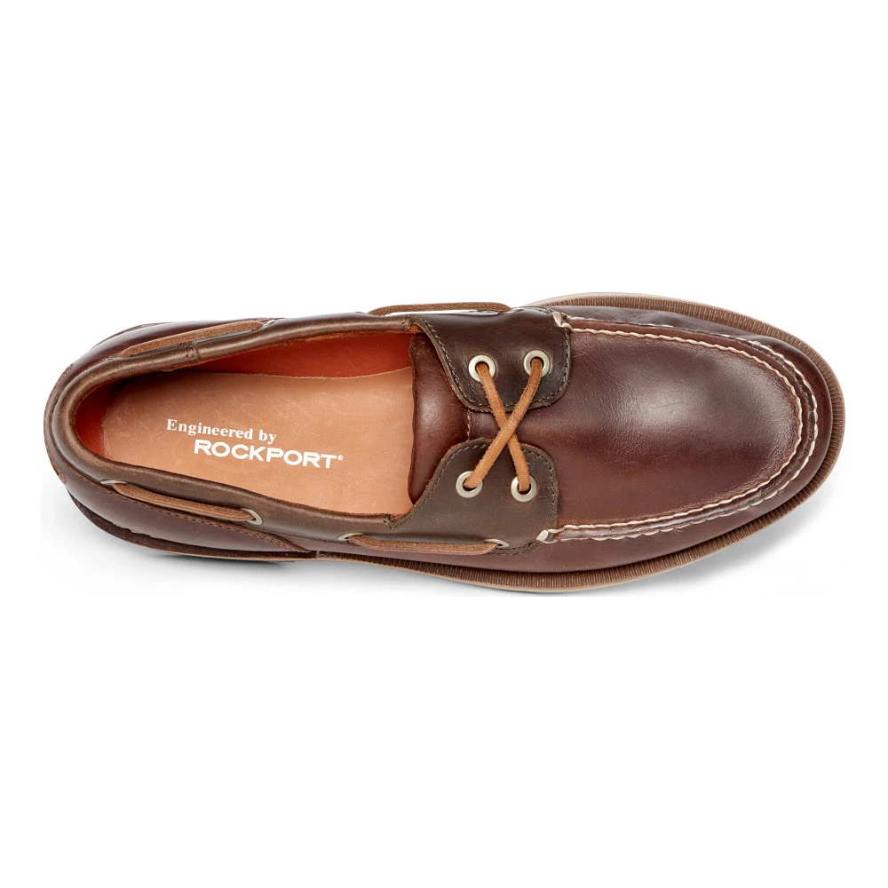 Men’s Rockport® Perth Boat Shoe :: This classic boat shoe is perfect for a summer outing by land or by sea. The round, hand-stitched moc toe and two-eye laces are decidedly nautical, while the heel cup provides heel support wherever you go. The rubber outsole yields a strong grip-perfect for a day on the docks.