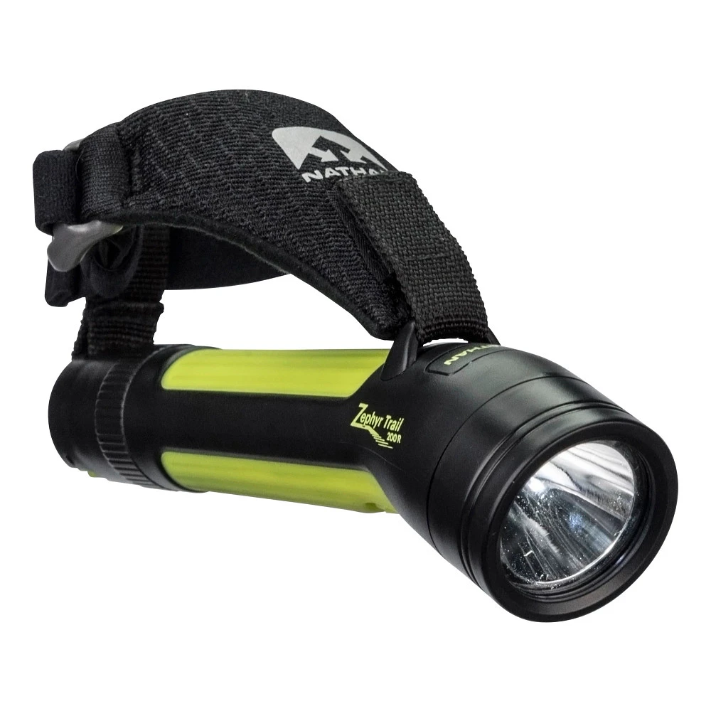 Nathan® Zephyr Fire 200 R Trail Hand Torch :: See and be seen with your powerful Nathan Zephyr Fire 200 Hand Torch. Illuminate your activities with easy downward projection. You can even carry it effortlessly in either hand with a comfy, adjustable strap. And with a built in emergency siren you can count on, your Zephyr Fire 200 R Hand Torch for complete safety.