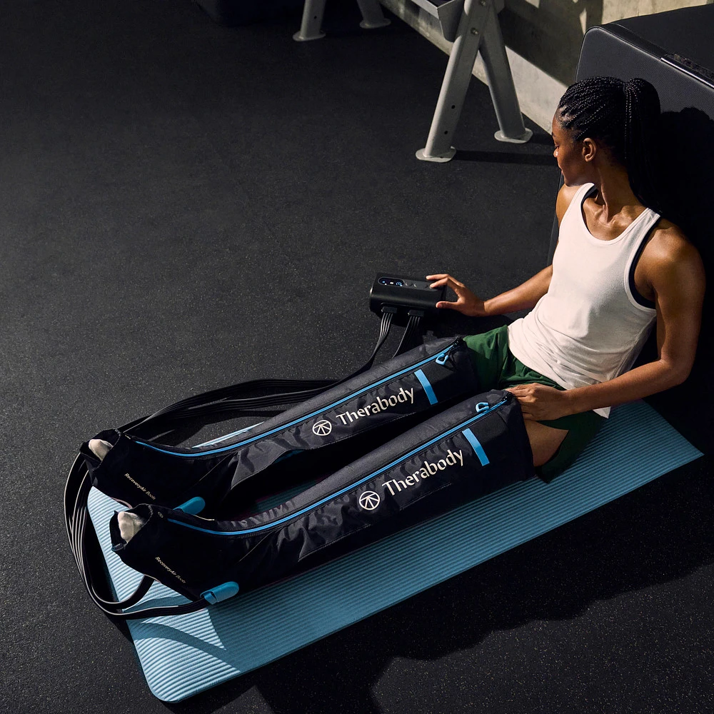 Therabody® RecoveryAir Prime Compression Bundle Medium :: The future of pressure massage is here with the Therabody RecoveryAir Prime Compression Bundle Medium. Sit back, relax, and recover faster as each boot compresses the leg to increase circulation reducing soreness and fatigue. FastFlush Technology™ aids in recovery by completing one full cycle in just 60 seconds; 2-3x faster than its competitors. Simple and easy-to-use, connect to recovery programs on the Therabody App, or simply use the presets. Enjoy advanced compression so you can do more of the sports you love. *Therabody RecoveryAir Prime Compression Bundle prices are too low for additional discounts or coupons to be applied.