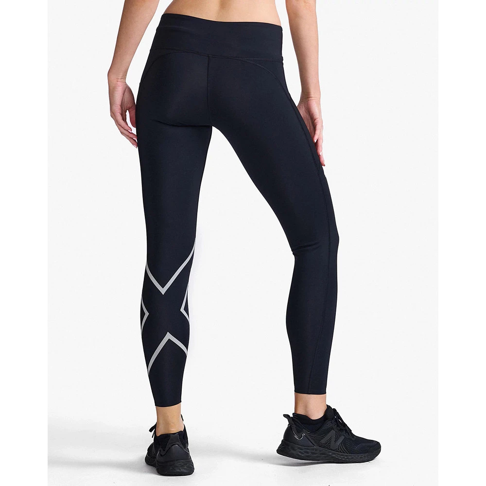 Women’s 2XU® Aero Mid-Rise Comp Tights :: Designed to alleviate overheating whilst running, the Aero Compression Tights feature innovative HeiQ Smart Temp technology that dynamically responds to body heat to keep you cool when your run heats up.