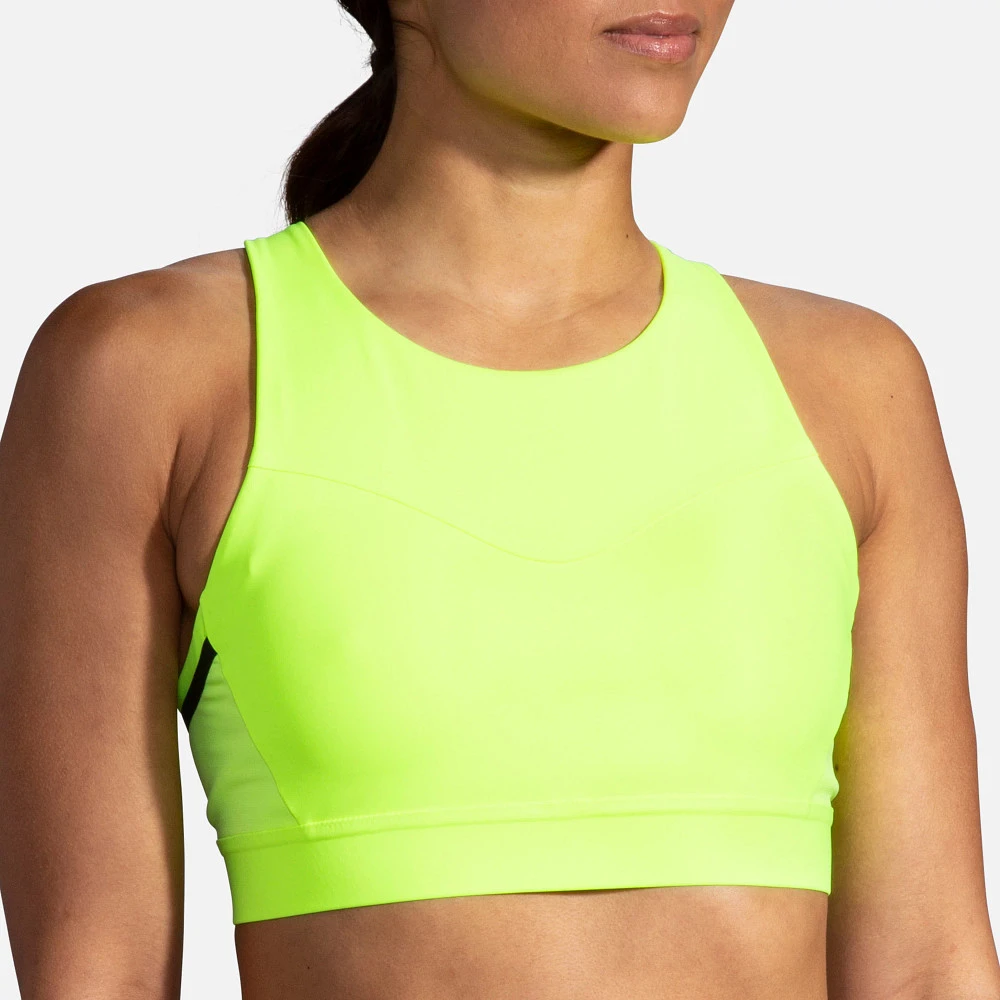 Women’s Brooks® Drive 3 Pocket Run Bra :: Pockets rule! Get secure, stealthy storage for all your essentials with the Women’s Brooks Drive 3 Pocket Run Bra. Two mesh side pockets and a bonded back phone pocket easily totes keys, music and more while you enjoy real run support in sweat-wicking DriLayerâ„¢ Horsepower fabric that keeps you comfy, mile after mile.