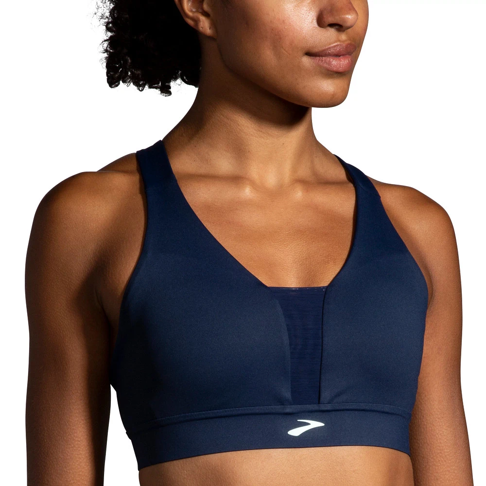 Women’s Brooks® Drive Plunge Run Bra :: Get the on-the-go support you need with the versatile Women’s Brooks Drive Plunge Run Bra. Designed with a flexible compression hold that moves with your body, this is fashion and function at its finest. Removeable cups offer added light coverage while modest styling keeps you moving in confidence while giving every run your all.