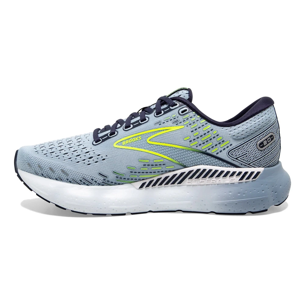 Women’s BROOKS® GLYCERIN GTS 20 :: Super-soft comfort for stability runners! Your Women’s Brooks Glycerin GTS 20 running shoe has a reimagined cushioning system and sole, offering you the smoothest ride yet. Thanks to the lightweight, Nitrogen-infused DNA LOFT v3 foam, this shoe is more durable, responsive, and comfy than before. Integrated GuideRails® technology reduces excess shin and heel rotation for a more natural stride. To add even more smoothness to each step (because why not?!), a wider platform was designed for the midsole and outsole of your Glycerin GTS 20 providing an ultra-stable base during transitions.