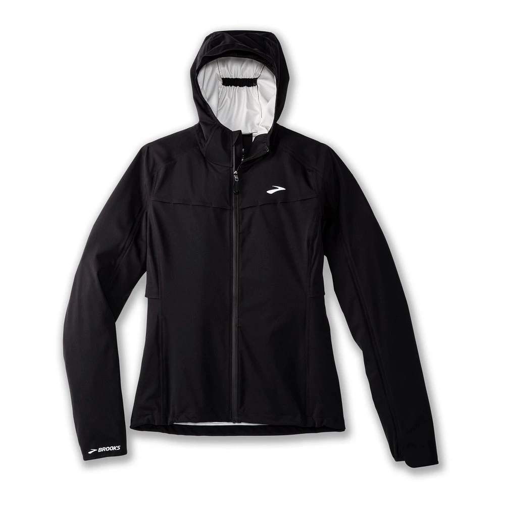 Women’s Brooks® High Point Waterproof Jacket :: Make rain your ally with your Women’s Brooks High Point Waterproof Jacket. The hood visor and DriLayer® Seal fabric protects you from 14k/14k-rated moisture, but still keeps you breathable. Enjoy lightweight mobility and a semi-fitted design that won’t slow down your adventure. Complete with bluesign®-certified materials, vents for breathability, and waterproof zippers, no weather can stop the endurance runner in you!