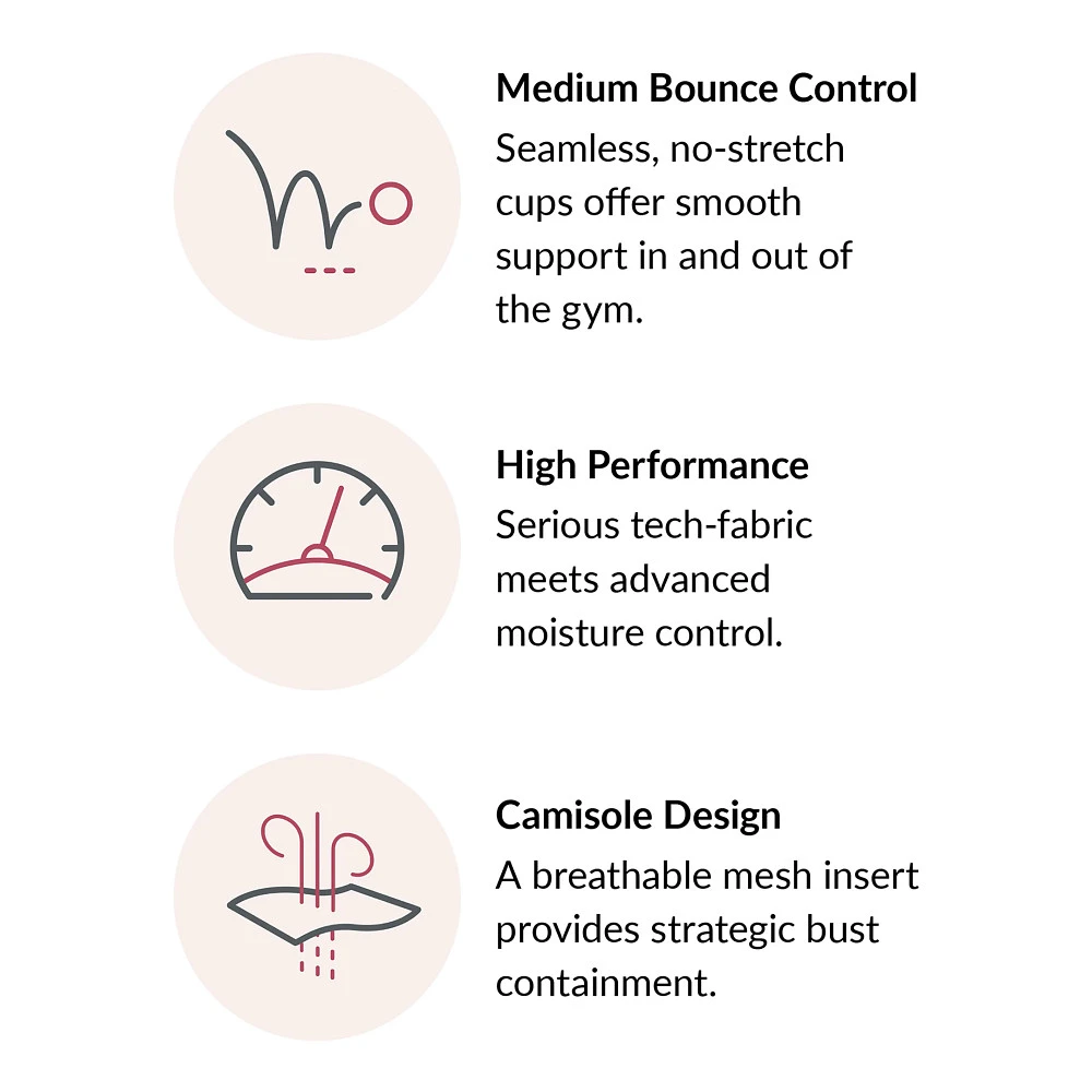 - Breathable open-air mesh camisole provides upper bust containment for secure fit