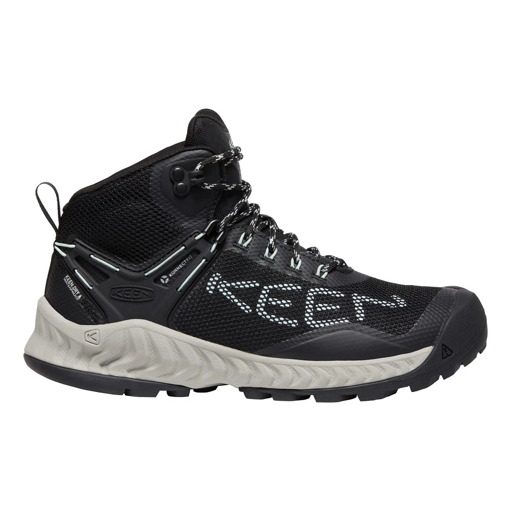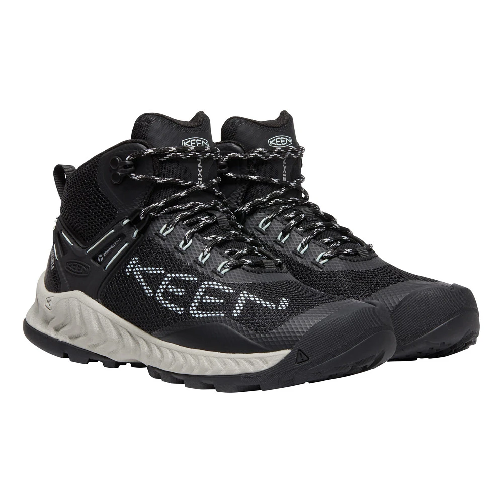 Women’s Keen® NXIS EVO Mid Waterproof :: What we love most about hiking fast is experiencing more things. More sunrises from the overlook, more high fives at the summit, more post-hike tea with friends back at the parking lot. And more terrain – asphalt to trail to scree to stone steps. So we took the room-for-your-toes comfort, protection, and stability of our iconic hiker and gave it a running shoe feel with a waterproof, engineered knit upper and all-terrain tread.