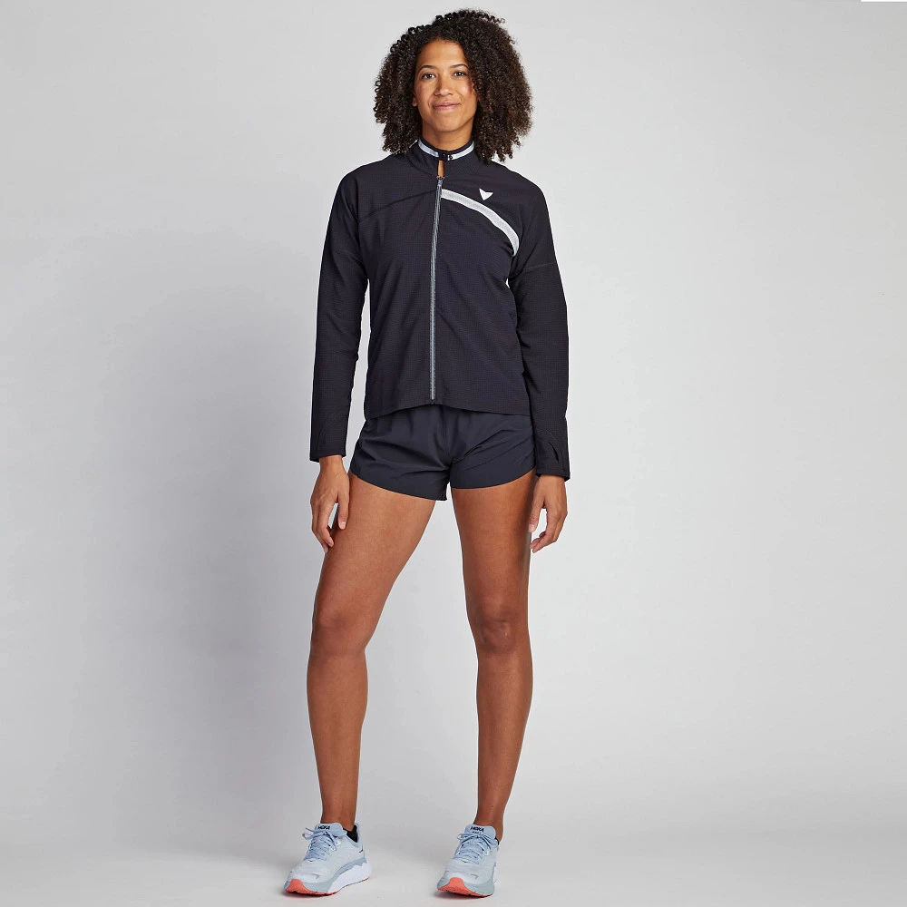 Women’s Korsa Adapt Full Zip Jacket :: Stay visible during your pre-dawn and post-sunset training with this reflective full zip run jacket made to cut the chill and shine bright in low light.
