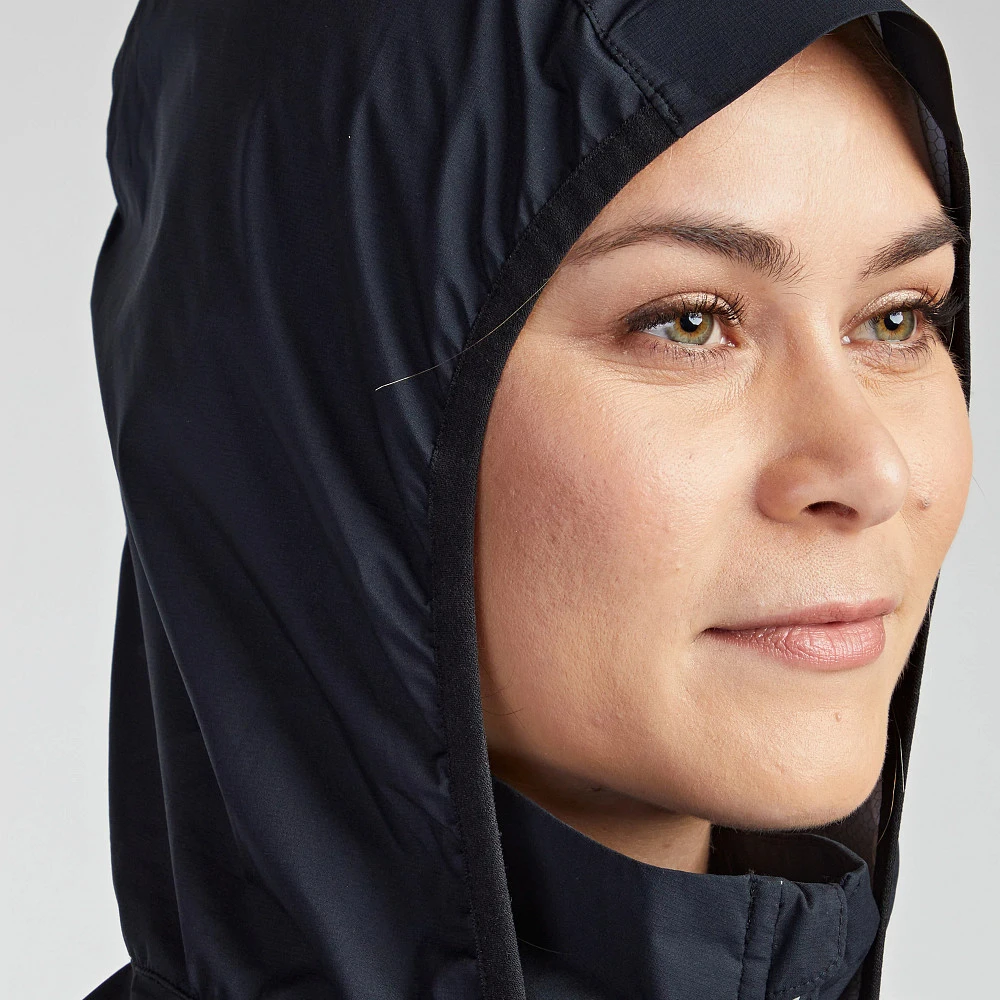 Women’s Korsa FieldTech Run Dry Jacket :: This durable midweight weather resistant run jacket is your shield against whatever the weather throws your way. A hidden stowable hood is there when you need it and nearly disappears when you don’t. Strategic back ventilation keeps you from overheating without compromising total weather protection.