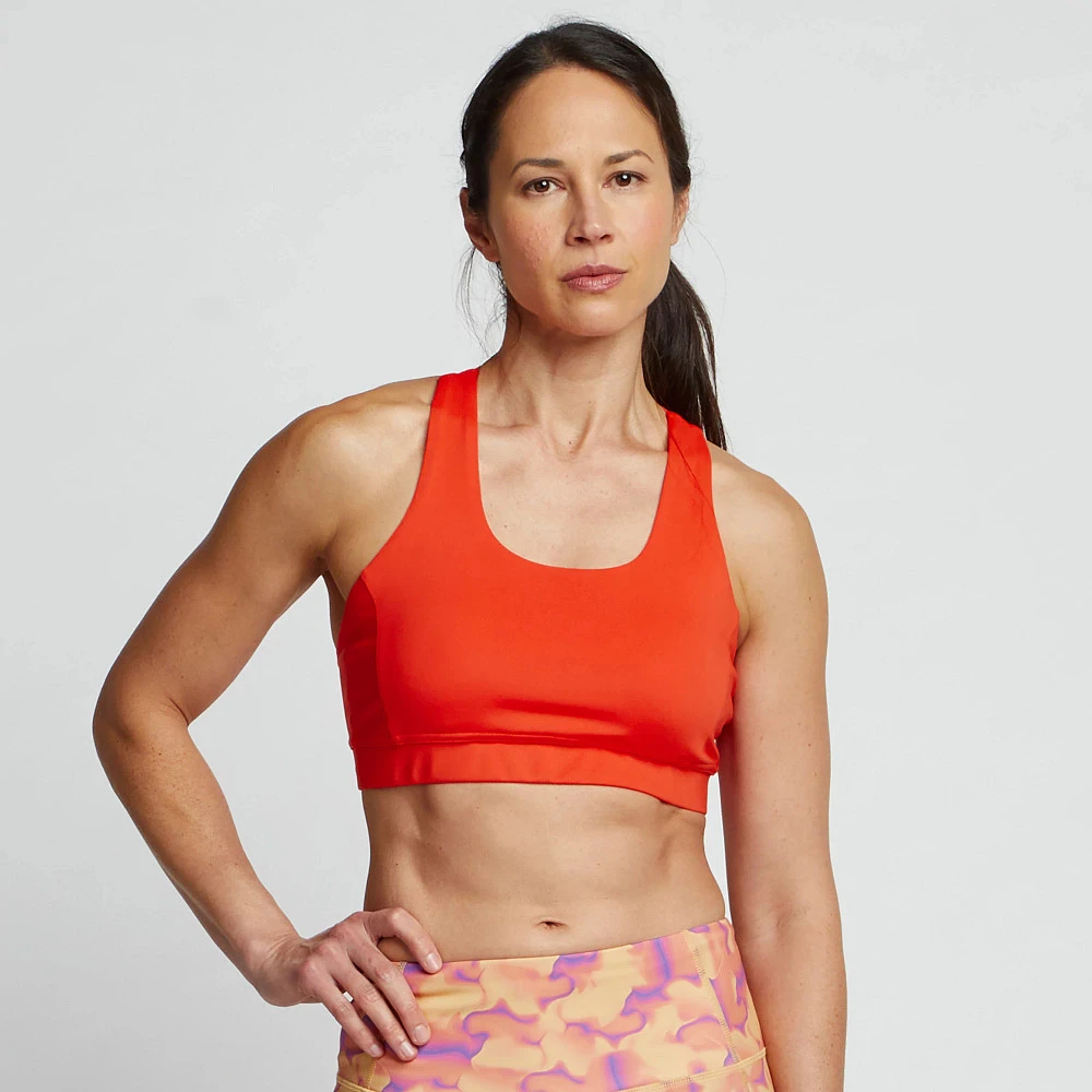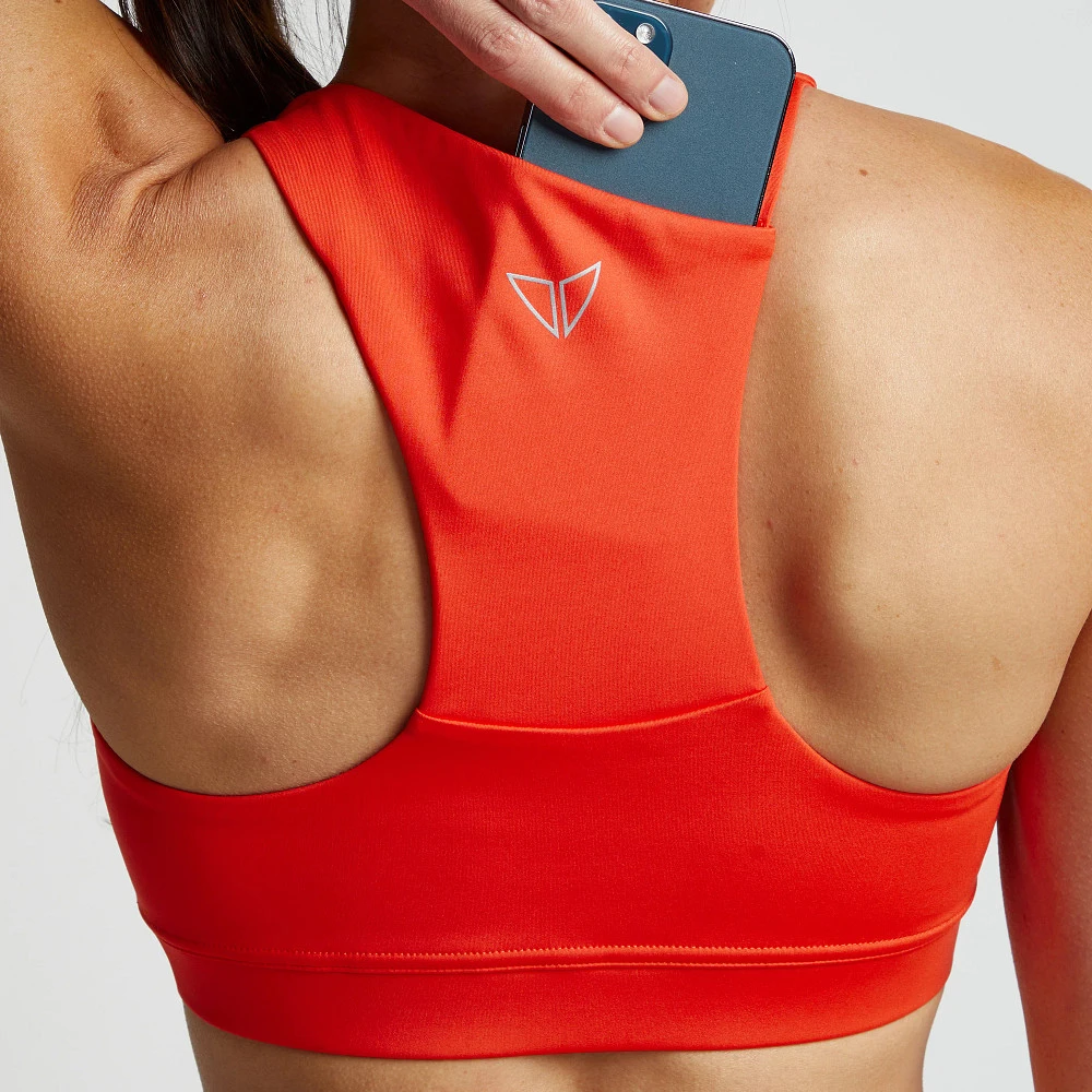 Women’s Korsa Hypnotic Pocket Bra 2.0 :: Boldly conquer running and workouts. Your Hypnotic Pocket Bra 2.0 is innovative, boasting a large 4″ x 6″ pocket in back created using all-new stylish criss-cross strapping. Made with performance moisture-wicking fabric, you’ll stay cool and dry from Pilates to the top of a mountain. Plus, clean finish seams and removable cups add an extra touch of comfort.