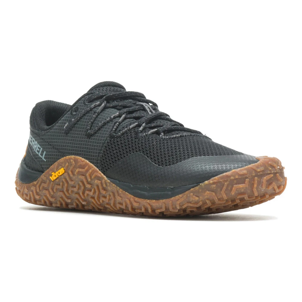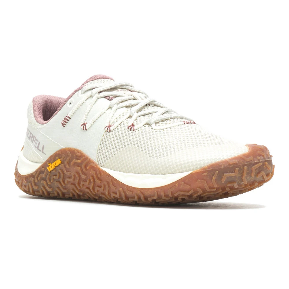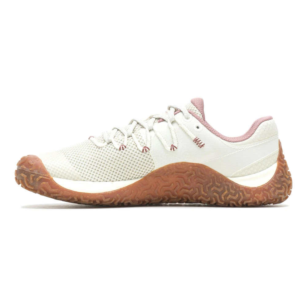 Women’s Merrell® Trail Glove 7 :: Merrell’s leadership in the barefoot category continues with the Trail Glove 7. Key updates include more natural foot positioning for a true minimalist feel, a Vibram® EcoStep outsole that wraps the foot to maximize grip and connection, and a minimal midsole made of FloatPro Foamâ„¢, our best midsole foam. Within the midsole, we also integrated our FLEXconnect® dual-directional flex-grooves for enhanced ground connection. Total stack height on these shoes is 14mm. Return to barefoot with the Trail Glove 7.