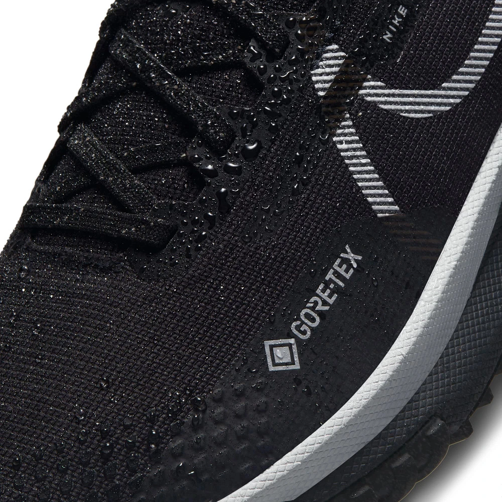 Women’s NIKE® PEGASUS TRAIL 4 GTX :: Never take a rain check when you have your updated Women’s Nike Pegasus Trail 4 GTX. Full-length React Foam in the midsole provides a responsive bouncy feel to continue returning energy no matter how long you run. Gore-Tex® Invisible Fit along the upper provides water protection, while a new gaiter around your ankle further prevents water and debris from getting in. All-weather is ideal running weather in your Nike Pegasus Trail 4 GTX.