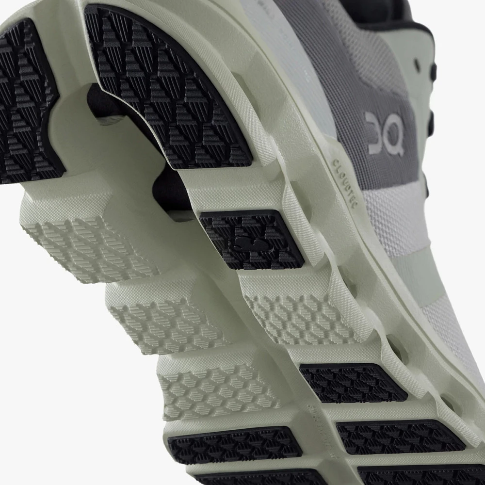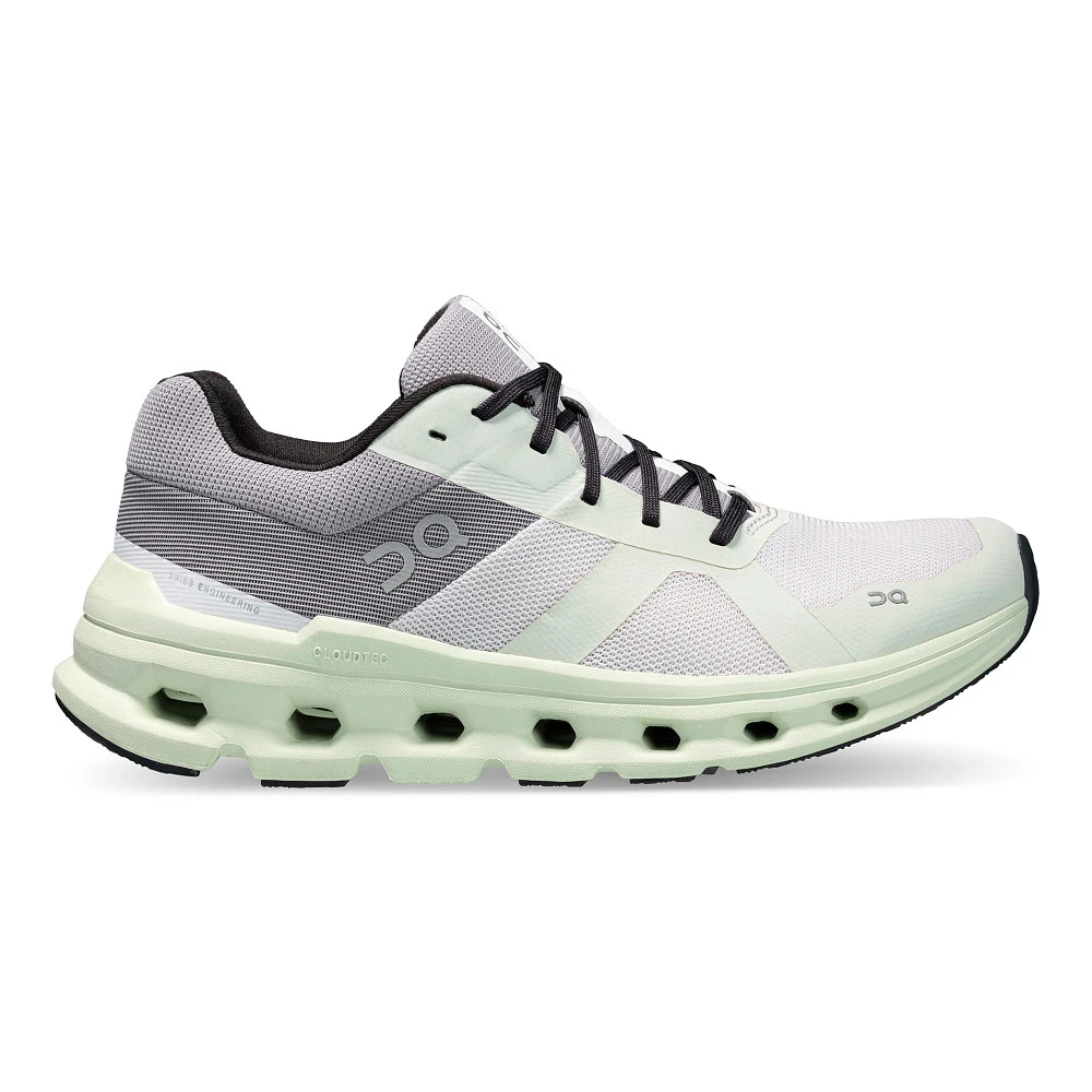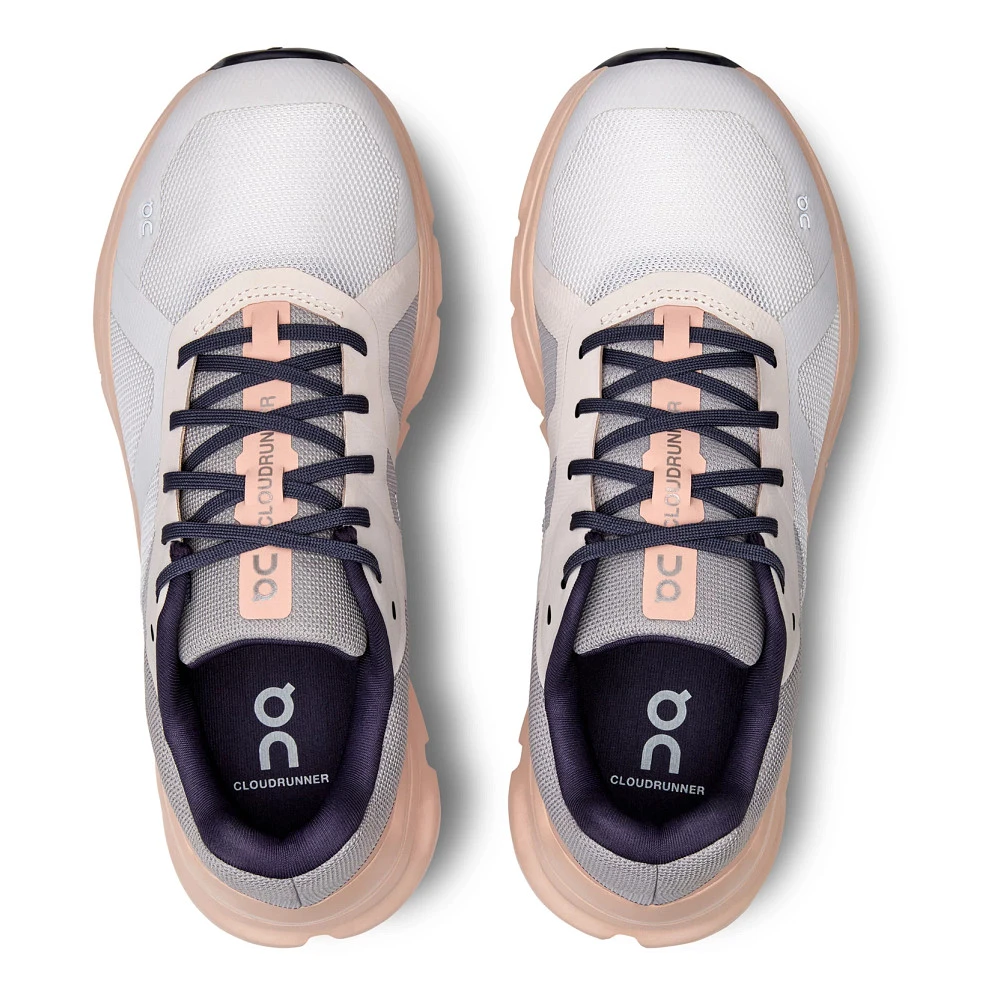 Women’s ON® CLOUDRUNNER :: Take impact out of the asphalt with your new Women’s On Cloudrunner running shoes. A wide Speedboard® gives you optimal balance and agility coupled with Cloudtec® in Zero Gravity foam absorbing both vertical and horizontal forces. The midsole cradles and cushions your foot while the foam collar and soft-touch tongue enhance the fit. Toes breathe easy with a ventilated engineered mesh upper that’s both functional and so, so soft. The grippy Cloudrunner outsole helps you feel secure and land with ease throughout all your running ventures.