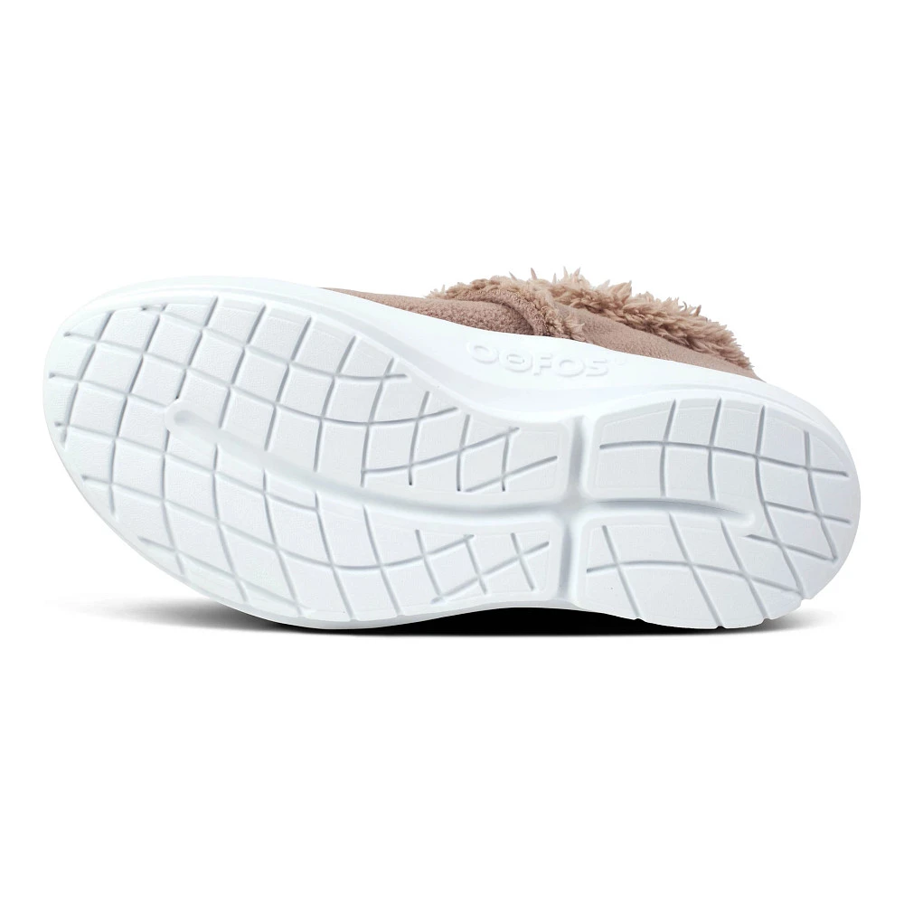Women’s OOFOS® OOCOOZIE LOW :: So COMFY! Your new Women’s OOFOS OOcoozie Low lounge shoes feature patented OOfoam technology, which absorbs 37% more impact than ordinary sneakers and helps reduce stress on those hardworking joints. Plus, the cozy sherpa upper is vegan, recyclable AND machine washable. Delicately cradling your arch and promoting a more natural stride, your OOcoozie Low’s are the perfect way to pamper your feet on those long rainy days spent around the house or when you’re out and about running errands.