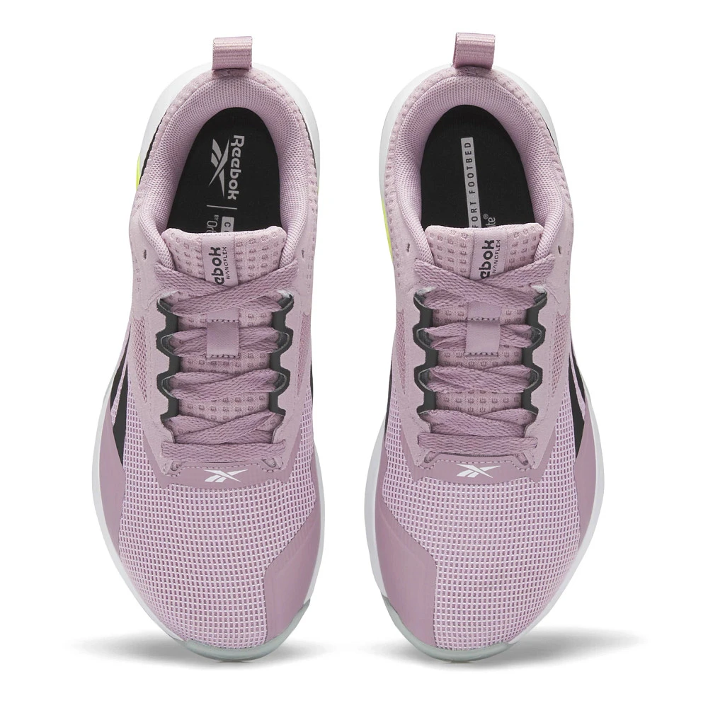 Women’s Reebok® Nanoflex TR 2.0 :: From plyometrics to weightlifting, these women’s Reebok training shoes give you confidence in the box. They have a breathable mesh upper with lightweight overlays for added support. A TPU heel clip offers stability and a streamlined look, and the MetaSplit outsole gives you flexibility for lunges and sprints. Once your workout ends, the sleek, wearable design transitions seamlessly into the rest of your life.