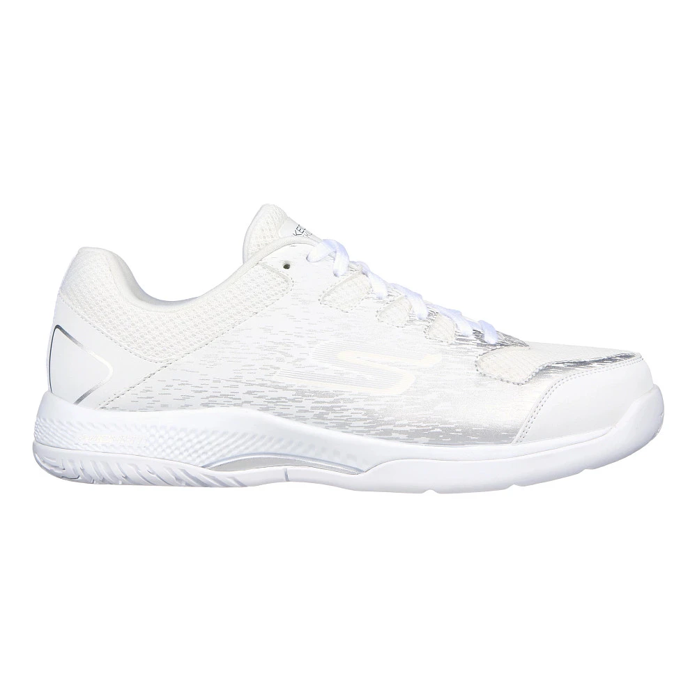 Women’s SKECHERS® VIPER COURT PICKLEBALL :: Side to side action is a must and your new Women’s Skechers Viper Court Pickleball shoes don’t disappoint! Goodyear rubber keeps you grounded as you move in all directions and ultra flight foam literally absorbs as you land and springs you forward for the support and cushioned comfort you need as you swing your way to the win. The Viper Court Pickleball sports a low-profile and is crafted with a lightweight, high quality mesh in the upper for optimal airflow – so go ahead, play all-day long.